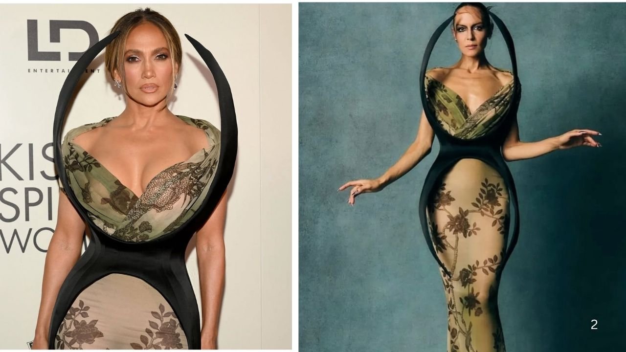 Jennifer Lopez seemed phenomenal on the “ Kiss of the Spider Lady” musical premiere in New York Metropolis on Monday in a inexperienced and brown Harris Reed robe that couldn’t have been extra becoming, and on theme. Movie star Stylists Rob Zangardi and Mariel Haenn clearly understood the project.