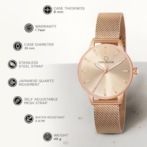 Carlington Women’s Analog Watch with Mesh Strap CT 2007 – Elegant Style Meets Everyday Functionality