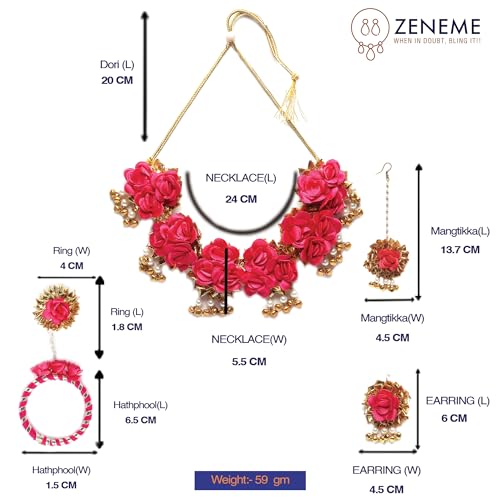 This jewelry set masterfully combines rich cultural heritage with everyday comfort — reflecting artisanal Indian flair with modern wearability. Whether you’re enhancing a traditional lehenga or pairing it with contemporary ethnic wear, the ZENEME floral set adds charm, elegance, and a festive edge to your look — making every moment picture‑perfect.