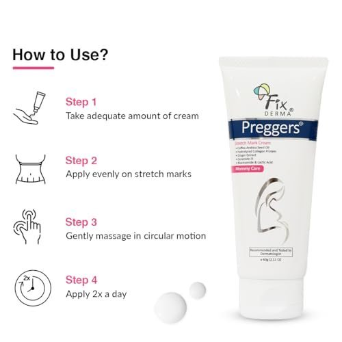 For best results, apply Fixderma Pregnancy Stretch Mark Cream twice daily on affected areas like abdomen, thighs, hips, and breasts. Gently massage the cream in to support absorption and effectiveness. It's easy to incorporate into your skincare routine.