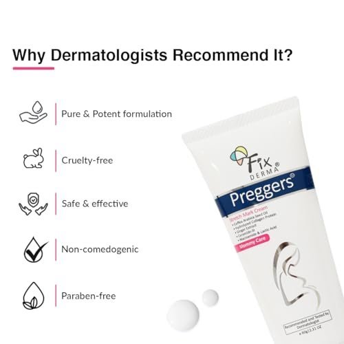 Experience effective stretch mark care with Fixderma Pregger’s Stretch Mark Cream, specially formulated for expecting and new mothers. Enriched with powerful ingredients like Ceramide, Niacinamide, and Lactic Acid, this cream deeply nourishes and restores skin elasticity, helping to reduce the appearance of stretch marks caused by pregnancy. Its gentle yet effective formula supports skin hydration and repair, making it an essential addition to your pregnancy skincare routine. Amazon link
