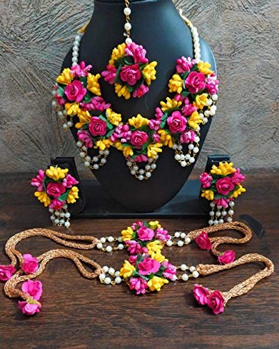 Specification: Indian Balika Vadhu Yellow Pink Jewelry Set – 6 Pieces