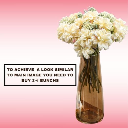 Elevate your decor with the SATYAM KRAFT Off White Dahlia Flower Bunch – 7 Stems, a versatile artificial floral arrangement perfect for home, office, weddings, parties, and event styling. Made from high–quality fabric, each lifelike Dahlia blossom adds timeless elegance with minimal maintenance. Amazon link