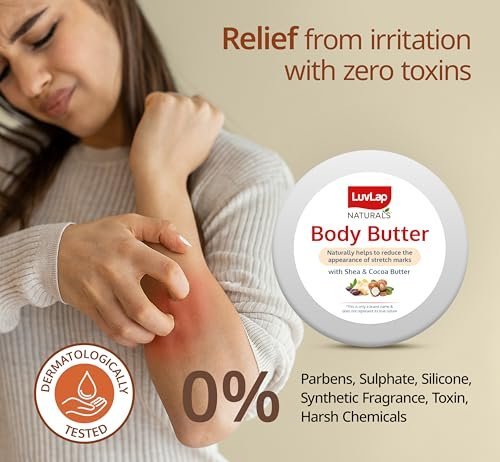 Pregnancy causes many changes in your body, and your skin deserves gentle, effective care. LuvLap Body Butter is dermatologically tested and designed to combat the common issues faced by expecting mothers—dryness, itchiness, and stretch marks. This rich, creamy formula absorbs quickly without leaving a greasy residue, making it ideal for daily use.