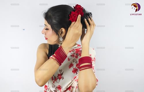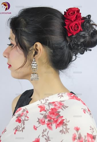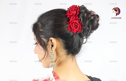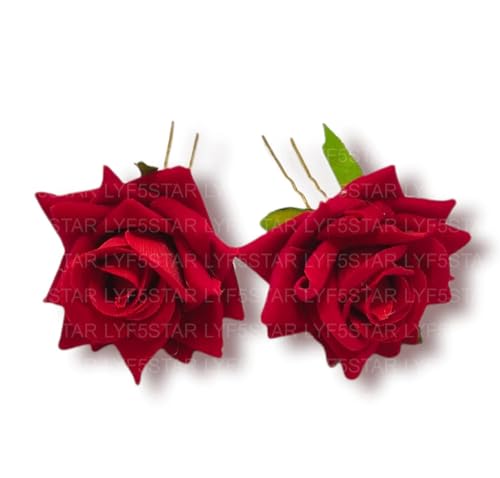 Elevate your bridal hair with timeless elegance using the LYF5STAR Red Rose Juda Pins. This handcrafted duo integrates traditional Indian flair with modern sophistication—perfect for weddings, festive occasions, and special celebrations. Made from realistic layered fabric petals, each rose stays vibrant and lifelike, offering a charming accent to your hairstyle. Amazon link