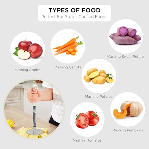 Versatile Kitchen Use – Not just for potatoes — also perfect for root vegetables, boiled carrots, squash, pumpkin, bananas, and for making guacamole, sauces, purees or baby food.