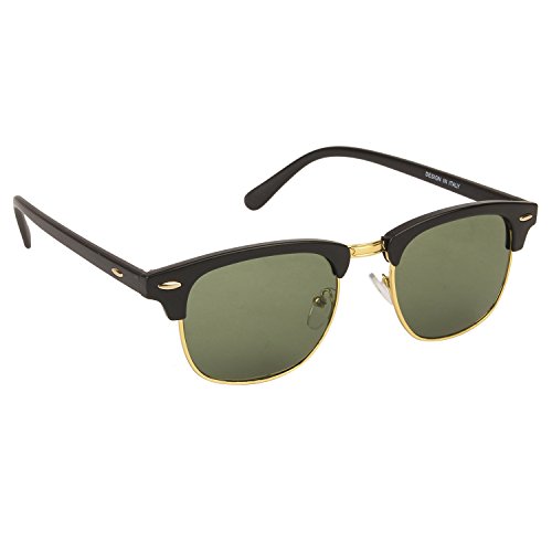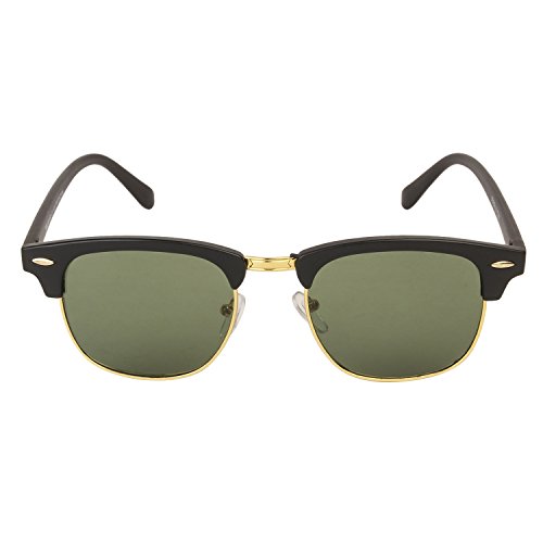 Elevate your style with the ARZONAI ClubMaster Black-Green UV Sunglasses. Designed for both men and women, these sunglasses feature a classic browline frame with black acetate and gold-tone metal accents, complemented by green polarized lenses offering 100% UV protection.