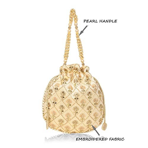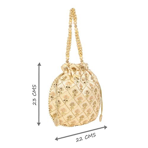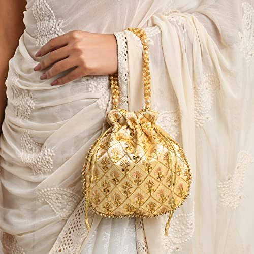 The classic round potli shape with intricate detailing makes it a stylish accessory that complements both traditional and modern outfits.Premium Quality Craftsmanship