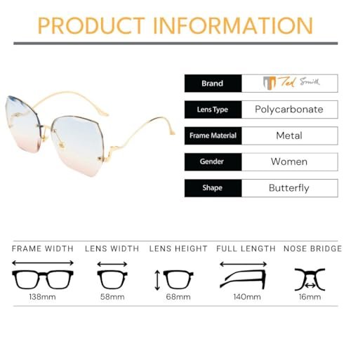 Ted Smith Women’s Stylish Rimless Butterfly Sunglasses UV