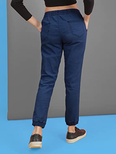 The joggers are crafted from durable solid denim fabric, offering long-lasting wear with a slightly rugged texture. The material retains softness for all-day comfort.