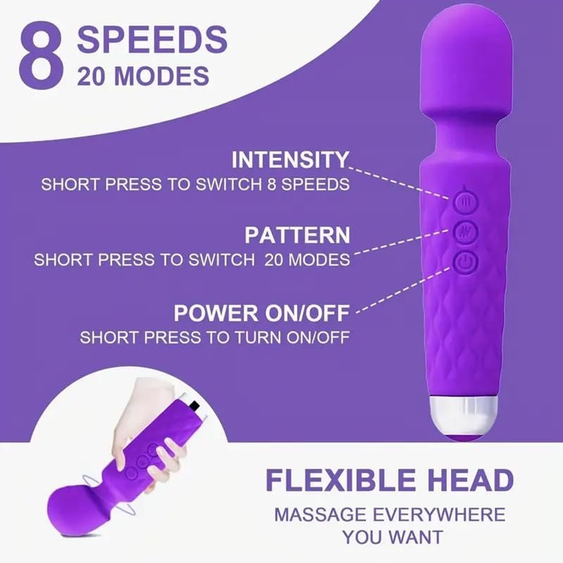 Experience full-body relaxation and pain relief with the Yetli Electric Massager, designed for both men and women. Featuring 20 customizable vibration modes and 8 intensity levels, this handheld massager offers deep tissue stimulation to soothe sore muscles, reduce fatigue, and improve circulation. Crafted from medical-grade silicone, it is skin-friendly, waterproof, and easy to clean. The USB-rechargeable battery ensures wireless use with up to 2 hours of runtime—perfect for use at home, in the office, or while traveling. Compact, quiet, and powerful—your ideal wellness companion.
